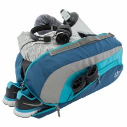 Harissons Jake Gym Bag, 31 L Duffel Bag with Shoe Compartment - Navy Turquoise, Unisex, Polyester | 3 in 1 Multi-Purpose Duffle Backpack for Travel | Quick Access Pocket & Detachable Shoulder Straps