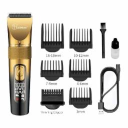Hatteker Rfc-695 Digital Display Ipx7 Full Waterproof Hair Clipper Self Sharpening Blade 5000/6000/7000 Rpm Magnetic 3 Speed Motor 5 Cutting Adjustments 4 Guide Comb Runtime 300 Min-Battery Powered
