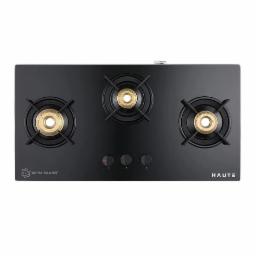 Haute Kitchen Evoque Series2.0XSabaf Just Black 3 Burner Manual Ignition Glass Gas Stove|8Mm Atom Glass|| Door Step Service | 5 years warranty on Burner, Glass, Valves By Haute Home