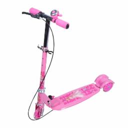 HCN Foldable Kick Skating Cycle with Brake and Bell - Three Wheeled Metal Folding Skate Scooter with Light up Wheels and Height Adjustable Handlebar Break and Bell | Age 3-12 Years (Pink Scooter)
