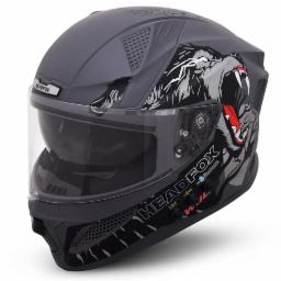 HEADFOX N2F Wolf Full Face Bluetooth Helmet for Bike Waterproof Smart Helmet for Man & Women | ISI Certified | Built-in Bluetooth | Matte Grey Large (60 CM)