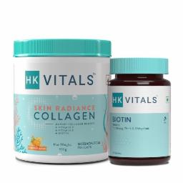 HealthKart HK Vitals Skin Radiance Collagen Powder, Marine Collagen (Orange, 100 g), Collagen Supplements for Women & Men, for Healthy Skin with Biotin for Strong Hair, 60 Biotin Tablets (Combo Pack)