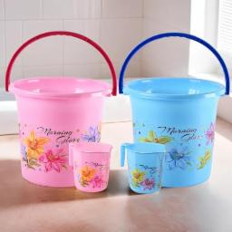 Heart Home (Set of 4) Bathroom Bucket & Mug Set | Bath Combo Set for Hotels, Laundry, Dorms (Each 1 Pieces) Bucket-18 L & Mug-500 ml Bathing Set | Bathroom Accessories Set | Blue & Pink
