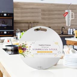 Herrlich Homes Premium 304 Stainless Steel Round Chopping Board for Kitchen | 30.5 cm | Free 2 Steel Straw | for Cutting Vegetables, Fruits, Meat | with Functional Handle | Durable | Medium