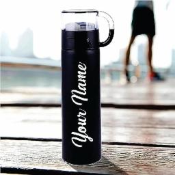 Himoksh Customized Water Bottle with Name Vacuum Insulated Hot & Cold Steel Bottle, Stainless Steel Reusable Flask, Double-Wall Flask Water Bottles, Bliss Black 500ml