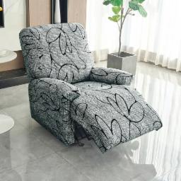 HOKIPO 140gsm Stretchable Recliner Sofa Cover 1 Seater, Intense Grey Abstract Floral (AR-4940-C2)
