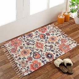 HOMADORN Handmade Sustainable Printed Modern Dhurrie/Rugs/Carpet upcycled from Scrap Fabric for Living Room/Bedside Runner for Enhanced Decor (2x3 feet)