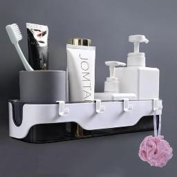 HOME CUBE 1 Pc Self Adhesive Bathroom Shelf Organizer Wall Mounted Shower Caddy Organizer Rack with 4 Hooks Space Saving Bathroom Shelf Rack Kitchen Storage Organizer Rack No Drilling Required