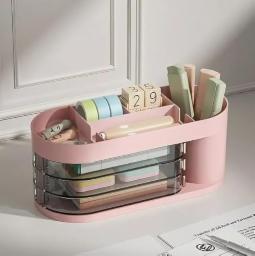 HOME CUBE Plastic Desk Organizer With Sliding Drawer Desktop Office Stationery Storage Box Desk Accessories Mobile Holder Table Organiser Study Table Office Table Desk Organizer (Pink)