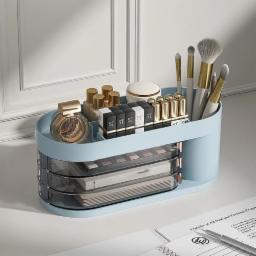 HOME CUBE Plastic Desk Organizer With Sliding Drawer Desktop Office Stationery Storage Box Desk Accessories Mobile Holder Table Organiser Study Table Office Table Desk Organizer (Random Color),Blue