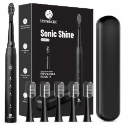 HOMEBASIC Sonic Shine Electric Toothbrush with 6 Dupont Brush Heads, 3 Modes, Smart Timer, USB-C Rechargeable, 50-Days Battery Lasting , IPX7 Waterproof, Quiet Motor, Travel Case – Black, Adult Oral Care