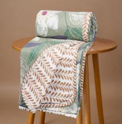HOMEKART Super Soft Cotton Printed Dohar |AC Blanket| Quilt/Duvet for Single Bed (60 x 86 inches) |Lightweight, Durable & Skin Friendly - 250 GSM |Single- 150x220 cms, Green & Beiege