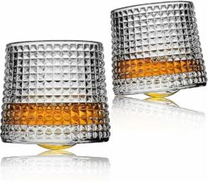 Homeprism Rotatable Bottom Crystal Whiskey Glasses Set of 2, Premium 160ml Scotch Glasses for Drinking Bourbon, Cocktails, Cognac, Rum