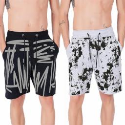 hotfits Men's Grey & Black Printed Casual Cotton Regular Shorts, Workout Shorts, Elastic Waist Running Shorts with Pockets Pack of 2- XXL