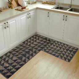 house of handmade - Anti Slip Rectangular Kitchen Mat Combo- 2 Pieces (Runner+Mat) Size- 45X130Cm And 45X85 Cm, Handwoven Cotton Floor Rugs, Machine Washable. Geometry Black