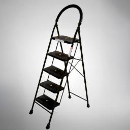 Houza 5 Step Steel Eco Ladder for Home with Anti Skid Shoes Steel Ladder with Platform, 5-Years Warrenty (Jet Black)