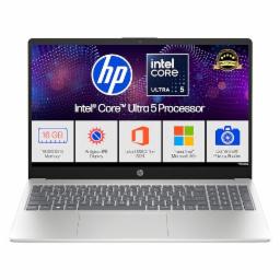 HP 15, Intel Ultra 5 125H, 12 TOPS (16GB DDR5, 1TB SSD) FHD, IPS, 15.6''/39.6cm, Win11, M365 Basic(1yr)* Office24, Silver, 1.65kg, fd1255TU, Intel Arc Graphics, FHD Camera w/shutter, AI powered Laptop