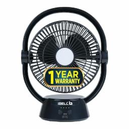 IBELL Portable Table Fan Rechargeable For Home, Mini Size, High Speed, With 2 LED Light Settings, 3 Speed Modes, USB Charging, High Speed (Black)