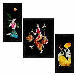 Get Indianara 3 Pc Set Of Still Art Paintings Without Glass (6 X 13, 10.2 X 13, 6 X 13 INCH, Black) worth Rs.1200 @ Rs.249 only.