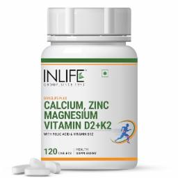 INLIFE Calcium Magnesium Zinc Vitamin D K2 Folic Acid & B12 Vegetarian Tablets, Bone & Joint Support Supplement | Calcium Supplement for Women Men - 120 Tablets (Pack of 1, 120)