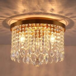 INTERIOR HANDICRAFT 3-Lights Brass Finish Crystal Ceiling Light Chandelier Jhoomar Pendant Lamp Jhumar Lighting for Home & Living Room (13 Inch, Glass & Metal)
