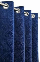 IVAZA Velvet Fabric Emboss Window Curtains 5 Feet Set of 1| Panel Thick Curtains for Home and Office Decor | Eyelet Grommet Bohemian Curtains for Living Room Kitchen Hall, (4x5 Ft, Blue