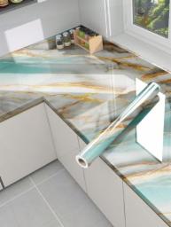 JB'S LAND 2024 New Vinyl Marble Wallpaper Peel and Stick Waterproof Wallpaper for Home Kitchen Countertop Cabinet Furniture Oil Proof Kitchen Stickers (60X200) (2024 New Sky Gold)
