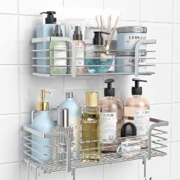 JIALTO Adhesive Bathroom Shelves with 3 Hooks | No Drilling Wall Mounted Rustproof Stainless Steel Bathroom Shelf | SUS 304 Stainless Steel Organization for Bathroom (30L*12W*12H CM, Silver)