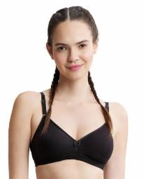 Jockey 1581 Women's Wirefree Non Padded Super Combed Cotton Elastane Stretch Medium Coverage Beginners Bra with Ultrasoft and Durable Underband_Black_34B