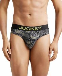 Jockey FP22 Men's Super Combed Cotton Elastane Stretch Printed Brief with Ultrasoft Waistband_Black & Empire Yellow_L