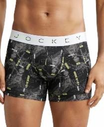 Jockey Men's Super Combed Cotton Elastane Stretch Printed Trunks with Ultrasoft Waistband_NY02_Black_M