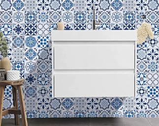 KASHIVAL Marble Foil Kitchen Stickers Oil-Proof Waterproof Self Adhesive Wallpaper PVC Bathroom Wall Stickers Contact Paper (60 * 200 cm) (Blue Floral A1, 1)