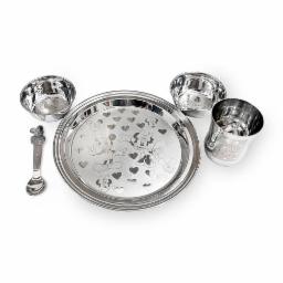 KC Steel Cartoon Baby Dinner Set Of 5 Pieces 1 Plate, 2 Bowls, 1 Spoon, 1 Glass (Mickey Minnie Design)