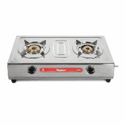 Khaitan 2 Burner VS2 Smart Stainless Steel Premium LP Gas Stove Manual Ignition with 100% Brass Burner (Silver, ISI Approved)
