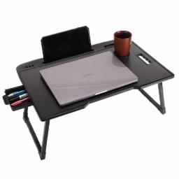 Kids & Adults Wood Multipurpose Foldable Laptop Table with Cup Holder | Table Home Study Writing Table, Foldable and Portable/Ergonomic Edges (UC KOT Black -Part 1)