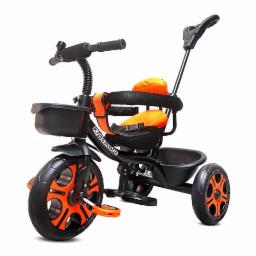 Kidsmate Thunder Plug N Play Kids/Baby Tricycle with Safety Guard Rail and Parental Control | Storage Basket | Fabric Cushion Seat & Bell for 12 Months to 48 Months Boys/Girls (Black_Orange)