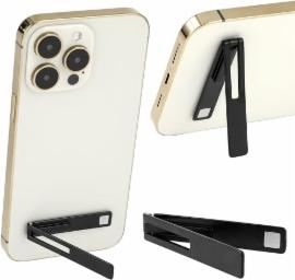KolorFish Ultra Thin Mobile Phone Holder, Adjustable Angle Mini Alloy Kickstand Portable Phone Stand Foldable Horizontal/Vertical Desk Stand Holder (Black)