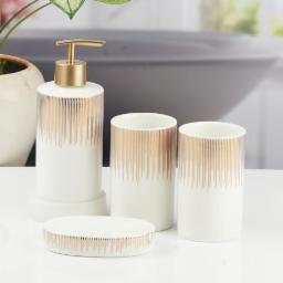 Kookee Ceramic Bathroom Set – Stylish 4 Piece Bath Accessories Kit with Soap Dispenser, Toothbrush Holder, Tumbler & Soap Dish – Modern & Designer Decor for Home & Guest Bathrooms (11395)