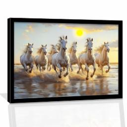 kotart Seven Running Vastu Lucky Horse Rising Sun Painting Wall Décor | 7 Horses Vastu Frame Wall Art Painting for Living Room Bedroom Office Home Décor Size 19x25 inch