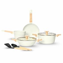 Kreme Ceracook Granite Ceramic Cookware Set of 4pcs| Forged Aluminium Body| Ceramic Nonstick| Gas & Induction Compatible| ISI Certified | Taffeta Ivory