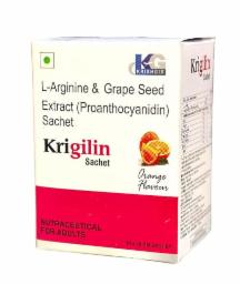 Krigilin L-Arginine 3g with Grape Seed Extract | Pre-Workout & Antioxidant Supplement | Orange Flavour | Each 10g Sachet | (Pack of 10 Sachets)