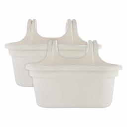 Kuber Industries Hanging Flower Pot|Double Hook Plant Container|Durable Plastic Glossy Finish Pots for Home|Balcony|Garden|12 Inch|Pack of 2 (White)