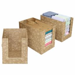 Kuber Industries Metalic Print Shirt Organizer for Wardrobe|Foldable Non Woven Shirt Stacker|Designer Cupboard Organizer for Clothes |Clothes Storage box|Pack of 3 (Beige)