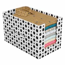 Kuber Industries Polka Dots Shirt Organizer for Wardrobe|Foldable Non Woven Shirt Stacker|Designer Cupboard Organizer for Clothes |Clothes Storage box (Black & White)