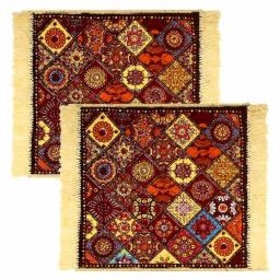 Kuber Industries Prayer Mat | Velvet Aasan Mat | Meditation Prayer Carpet Mat | Pooja Aasan Mat | Rangoli Square Prayer Mat | Traditional Prayer Mat | Small | Pack of 2 | Multicolor