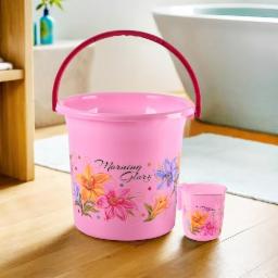 Kuber Industries (Set of 2) Bathroom Bucket & Mug Set | Bathroom Combo Set for Bathroom, Hotels, Laundry | Bucket-18 L & Mug-500 ml Bathing Set | Modern Bathroom Accessories Set | Pink