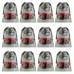 Kuber Industries Shoe Cover/String Bag Organizer|Shoe Print & Non Woven Material|Transparent Window|Size 43 x 30 Cm, Pack of 12 (Grey)-CTMTC039511
