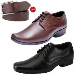 Latest Trendy Formal Shoes/Party Shoes/ 2 Shoes Combo with Free Belt for Men and Boys (BAZAAR8948_VTR001-Blk004-Brwn-1-Brwn) Multicolor