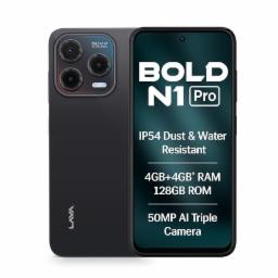 Lava Bold N1 Pro (Stealth Black, 4 GB RAM, 128 GB Storage)| Bigger 6.67" HD+ IP54 Display | 120 Hz Refresh Rate | 50 MP AI Triple Rear Camera | 8 MP Front Camera| 5000 mAh Battery| Charger in Box