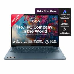 Lenovo Yoga Slim 7 AMD Ryzen AI 7 350, Copilot+ AI PC(32GB RAM/1TB SSD/14"(35.5cm)WUXGA OLED/AI Now/50 TOPS/Windows 11/Office Home 2024/Backlit Keyboard/1Yr ADP Free/Teal/1.19Kg), 83JY000UIN AI Laptop
